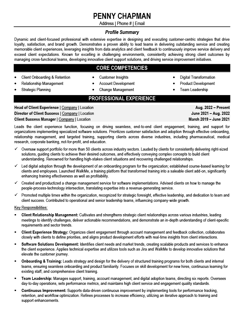 Resume Target specializes in helping Customer Service Directors demonstrate their executive-level impact. We'll help you craft a powerful narrative that connects your leadership style to concrete business results, positioning you for senior roles that match your expertise.