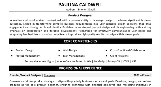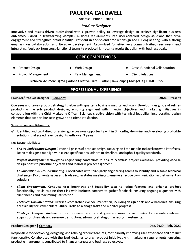 Transform your academic training, design projects, and technical knowledge into compelling skills that showcase your readiness to create innovative product solutions while meeting user needs and business objectives.
