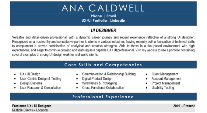 Reason: This helps frame your overall professional perspective and demonstrates your understanding of the fundamental balance required in UI design, setting the tone for your entire resume.