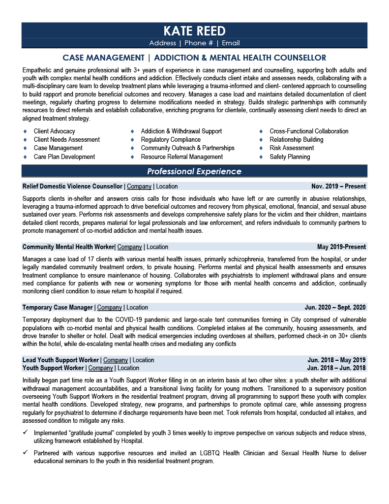 At Resume Target, we specialize in helping addiction counselors showcase their impact in the non-profit sector, transforming complex case management experiences and therapeutic approaches into compelling career narratives.