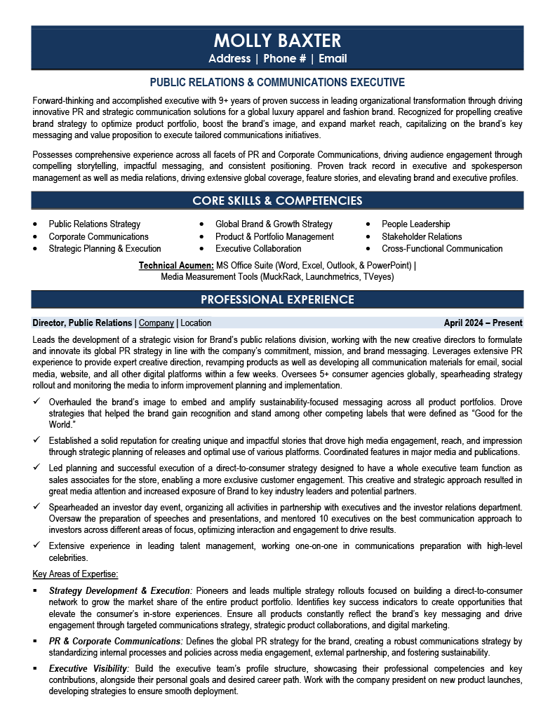 Standing out in the crowded PR field takes more than a list of press releases and media contacts. Your resume needs to tell a compelling story about your ability to shape public perception and drive results.